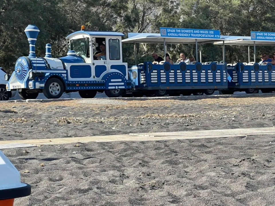 Κατά τη περσινή τουριστική περίοδο φαίνεται να διεκόπη η λειτουργία του τρένου από το Δήμο Θήρας και πιο συγκεκριμένα από τον αρμόδιο αντιδήμαρχο, λόγω πολλών παραπόνων και βασιζόμενο στην ακαταλληλότητα και επικινδυνότητα της παραλιακής οδού για τέτοια ανορθόδοξα οχήματα.